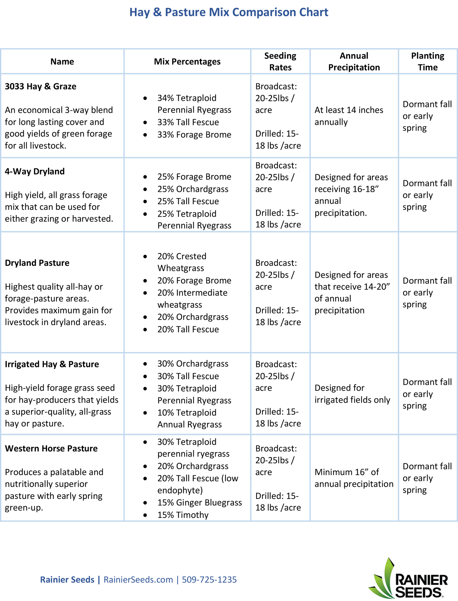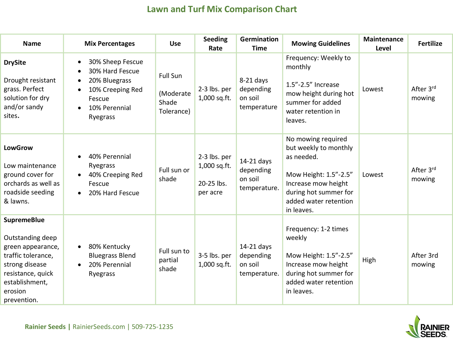 Compare mix percentages, use, seeding rates, germination time, and more.