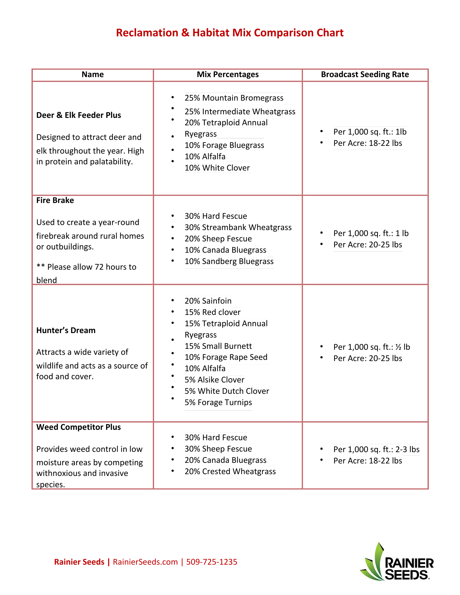 Broadcast Seeding Rates: 1 lb/1,000 sq ft or 20-25 lbs/acre