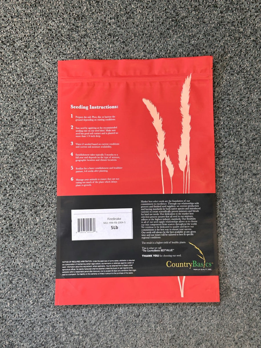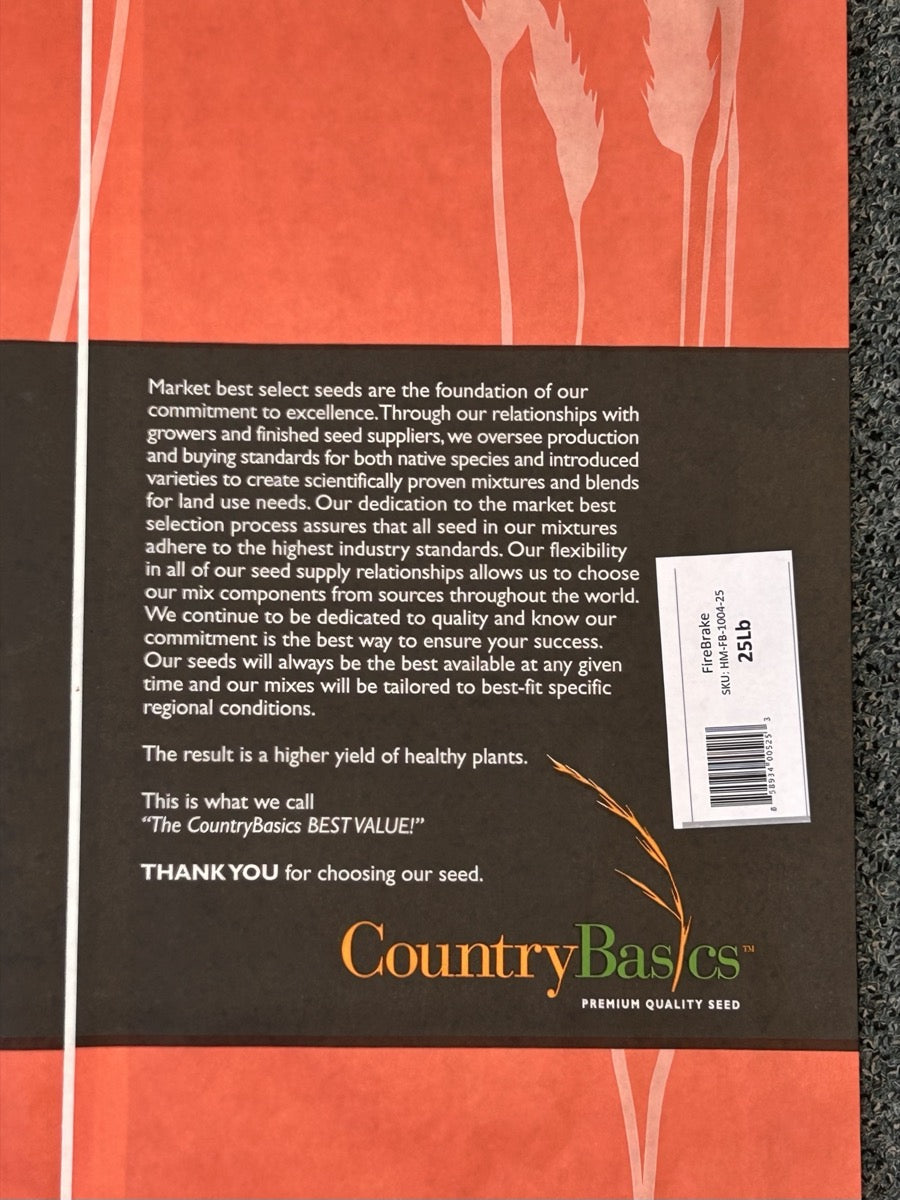Creating a “Fire Brake” around rural homes and outbuildings can reduce the risk of damage by wildfire. Fire Brake contains coolseason, low growing , drought tolerant grasses that go dormant later than other grasses or weeds, which reduce dry matter to fuel a fire. When used with other prevention practices, this mix can greatly reduce the threat of wildfires to your home.