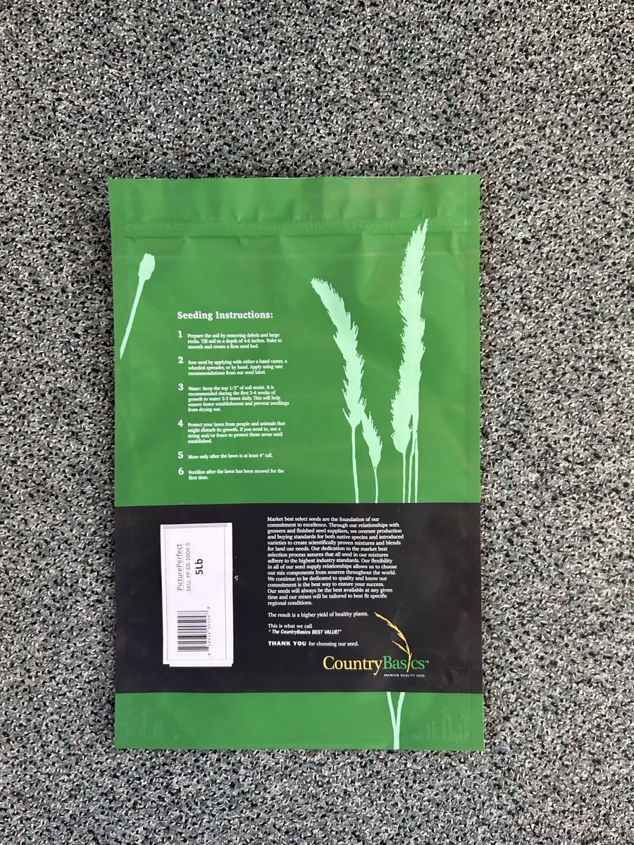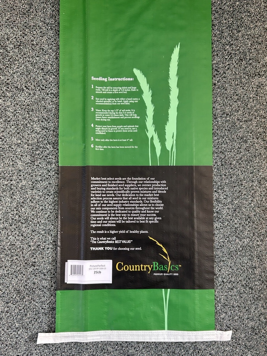 PicturePerfect will grow into an elite lawn and maintain its premium quality for many years with moderate care. This mix contains a blend of superior quality Kentucky Bluegrasses, Perennial Ryegrasses, and Fine Fescues. It offers a quick turf establishment, some shade tolerance, strong disease resistance and the diversity to perform well under many soil types.